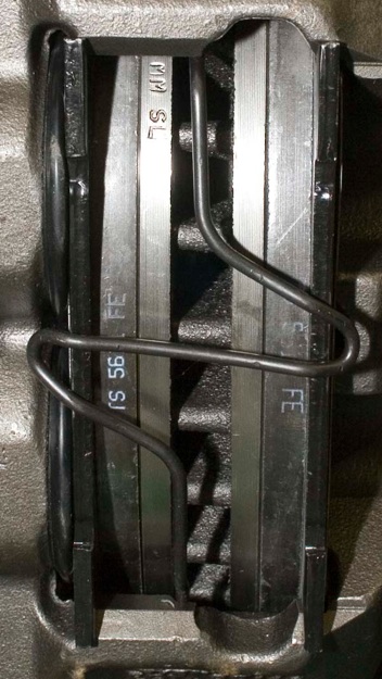 After installing the caliper keepers, install the Z-spring as shown in the photo on the left.